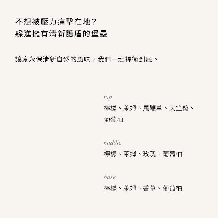 • 使用國際IFRA認證歐洲頂級香精,蘊含天然植萃精油。
