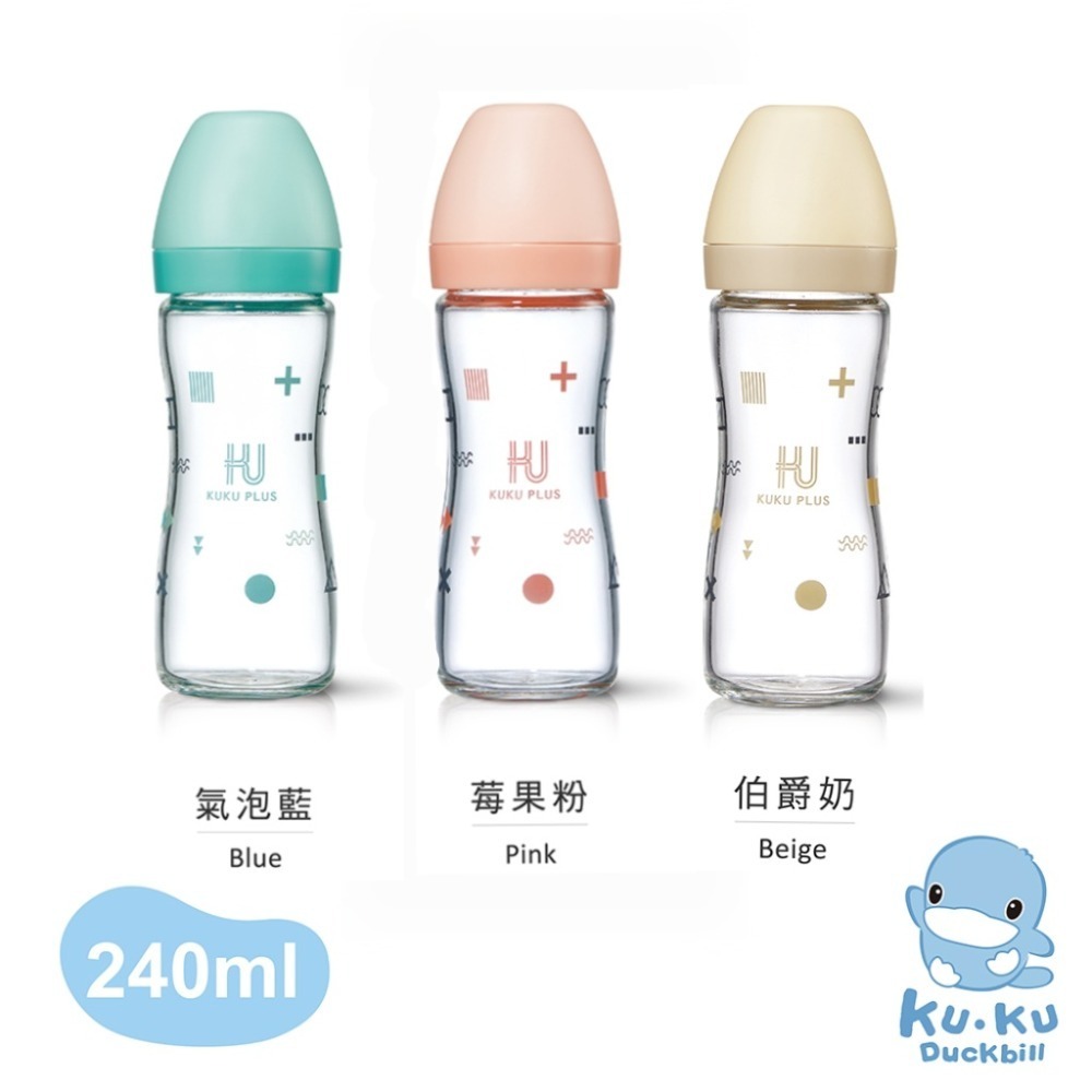 酷咕鴨 Ku.Ku PLUS純真之瞳寬口玻璃奶瓶240ml(M十字孔奶嘴)