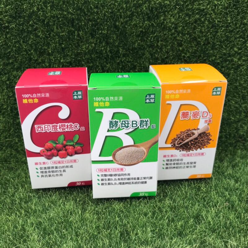 優良生醫 上原本草 酵母B群錠 / 西印度櫻桃C錠 / 蕎麥D3膠囊 📣100%自然來源維他命~