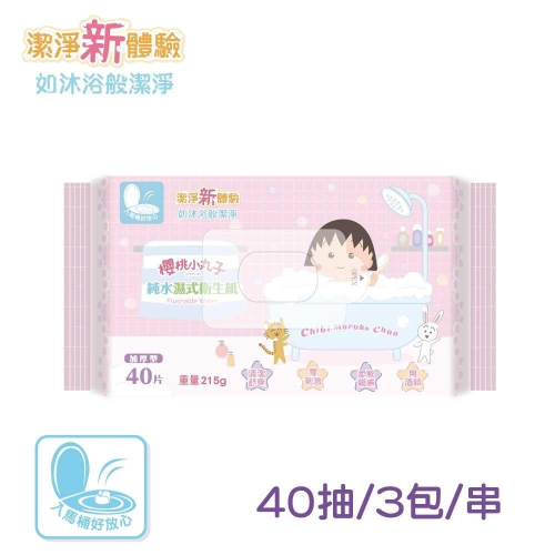 櫻桃小丸子純水濕式衛生紙40抽x3入/串