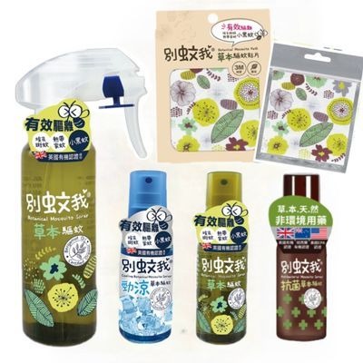 📌別蚊我 草本驅蚊貼片-15枚 ●嚴選天然草本植物精油 成分:天然檜木精油、香茅精油。 材質:高密度無紡布(無毒材質製成)、3M背膠。 注意事項: 1.建議搭配驅蚊噴霧,驅蚊效果更佳! 2.開封後使用時間依環境溫度不同(室內使用約12小時,戶外約4小時),未使用時,請放置鋁箔袋密封保存,以保持產品壽命。 3.請勿直接貼於皮膚上,本品為揮發性天然防蚊精油,勿放置於陽光下或高溫處保存。 4.請置於嬰幼兒無法取得處以避免誤食,使用中請大人陪同使用。 5.若不慎沾到口、眼等部位,以清水洗淨。 6.使用後如有任何不適現象,應立即停止使用並洽詢專業醫師。 7.使用完畢後,請立即撕除貼片,勿丟於洗衣機,避免背膠殘留在物品上。 8.拆封使用後的貼片,因環境長時間受濕氣溫度及受熱不同,背膠如產生不昜撕除,可使用冰塊冰敷去除。 📌別蚊我 草本驅蚊噴霧80ml / 200ml ●超信賴認證-嚴選英國土壤有機佛手柑精油,協同檜木與雪松精油,調配富層次的草本複方精油。 成分:有機佛手柑精油、檜木精油、尤加利精油、雪松精油。 注意事項: 1.請置於嬰幼兒無法取得處以避免誤食。 2.使用後如有任何不適或持續紅腫現象,應立即停止使用並洽詢專業醫師。 3.皮膚敏感者,使用前請先做局部皮膚敏感性測試,無刺激反應方可使用。 📌別蚊我 勁涼草本驅蚊噴霧-80ml 成分:有機佛手柑精油、歐薄荷精油、檜木精油、尤加利精油、薄荷腦 注意事項: 1.請置於嬰幼兒無法取得處以避免誤食 2.使用後如有任何不適或持續紅腫現象,應立即停止使用並洽詢專業醫師 3.皮膚敏感者,使用前請先做局部皮膚敏感性測試,無刺激反應方可使用 📌別蚊我 抗菌草本驅蚊噴霧80ml 成分:紐西蘭有機桃柘羅漢松、有機佛手柑精油、諾卡酮、檜木精油、雪松精油 注意事項: 1.請置於嬰幼兒無法取得處以避免誤食 2.使用後如有任何不適或持續紅腫現象,應立即停止使用並洽詢專業醫師 3.皮膚敏感者,使用前請先做局部皮膚敏感性測試,無刺激反應方可使用 ---------------------------------------------------------------------------- 販賣藥商許可執照 許可執照字號:彰縣藥販字第MD6237008063號 藥商名稱:瀚元生技商行 藥商地址:彰化縣彰化市復興里學士街12號1樓 諮詢專線:0982598857 消費者使用前應詳閱療器材說明書