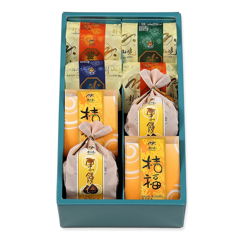 禮盒內容物 : 小月餅*2 , 蛋黃酥*2 ,桔福*2 , 栗饅*2 。