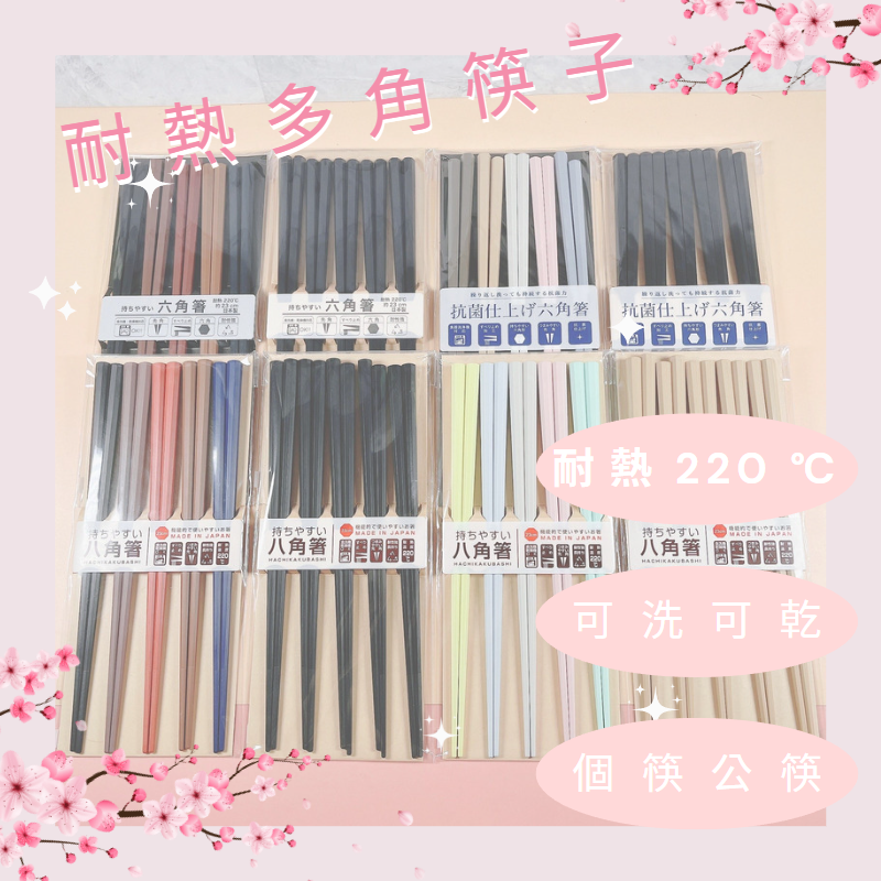【現貨】Sunlife 耐熱多角筷子 耐熱筷 日本筷 六角筷 八角筷 止滑筷 防滾筷 環保筷 個人筷 家庭筷 5入