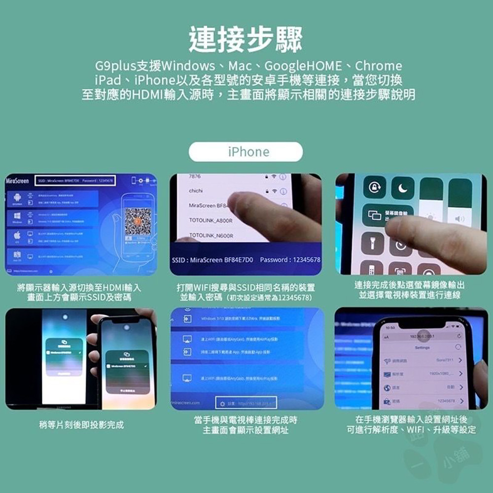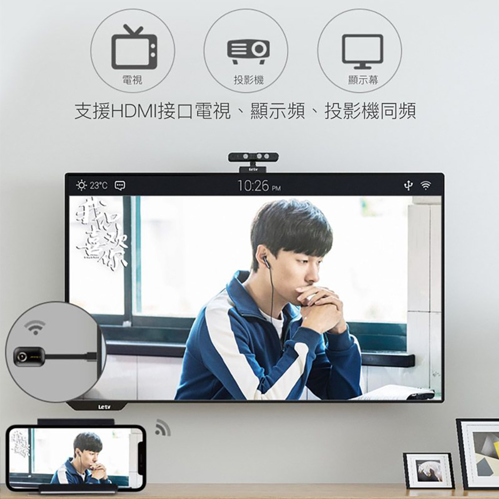 無線屏幕鏡像,可將 iOS 和 Android 智能手機、平板電腦的整個屏幕同步鏡像到 HD TV 或投影儀,非常適合 PPT 演示和大屏幕電影。支持全高清無線音頻和視頻傳輸,具有高清介面的 4K 輸出。便攜式設計,便於攜帶。 支援 4K 條件 1. 連接的電視需支援 4K。 2. 觀看時須使用瀏覽器,APP 不支援(支援 APP 的投影線請參考:bono - 三合一 HDMI 影音傳輸線 )。 3. 變壓器需支援至 2A。 無線顯示 1. 外部 WiFi 模組支持 802.11b / g / n 無線連接,2.4GHz WiFi,強信號,支持視頻,音頻,照片,辦公文件無線顯示。 2. 支持多操作系統(適用於 Android / iOS),並支持 Miracast,Airplay 和 DLNA。適用於帶Airplay 的 iOS 8.0 及更高版本設備以及帶 Miracast 的 Android 4.2 及更高版本。 3. 無需按鈕即可在 Airplay 和 Miracast 模式之間自由切換。即插即用,無需安裝驅動程式,易於操作。低功耗和低熱量。 規格 WiFi 頻段:2.4G 操作系統:Linux CPU:AM8272X CPU速度:600MHz RAM:DDR3 128MB WiFi 模組:8188FTV WiFi 頻率:2.4GHz Max 解析度:1080p 4K 電源:5V 1A 文件格式:PDF,Word,Excel,PowerPoint,I Works 視頻格式:AVI,DIVX,MKV,TS,DAT,MPG,MPEG,MOV,MP4,RM,RMVB,WMV 音頻格式:MP1,MP2, MP3,WMA,OGG,ADPCM-WAV,PCM-WAV,AAC 照片格式:JPEG,BMP 支援哪些手機、平板、電腦 iOS、Android(95%機型)、Windows、Mac、平板。 不支援機型 OPPO AX5、AX7,三星 2017 前的 J 系列 @充電需要2安培 注意事項 1. 電視棒會因變壓器(充電器)老舊電壓不足導致連接畫面或聲音卡頓,可加購 5W 充電器讓影音不卡頓 2. 部分 APP 播放程式,例如 Netflix 會因為版權問題會無法撥放在大螢幕上(此原因非瑕疵不屬於退貨範圍) 3. 目前 OPPO 的手機功能必須有 "無線投影" 才能使用喔 HDMI 無線投影電視棒Q&A 1. 為什麼接上HDMI無畫面? 請確認是否有接電源線,並確認電視是否調成正確的訊號端。 2. 所有電視皆可使用嗎? 不管電視的新舊,只要電視有 HDMI 插口,皆可使用。 3. 蘋果系統都支援嗎? 產品支援 iOS 9 以上,也持續支援更新後的 iOS 系統。 4. 投影後影片沒有聲音? 電視棒連接螢幕後,聲音會透過螢幕上的喇叭輸出,請確認您的電視、螢幕是否有配置音響喇叭,且音量有開啟。 5. 連接後電視多久會有畫面? 全部線插好後,使用以上操作步驟,手機會顯示充電中的狀況,大約等待 5~20 秒,有些手機會馬上有反應,有些需等待數秒,大螢幕即會有畫面。 6. 有些影片沒辦法投影觀看? 請確保您觀看的片源並未設置加密,加密影音平台因有加密所以無法觀看係屬正常。 7. 為什麼投影後 YouTub 影片、遊戲有時會延遲? 畫面速度可能因手機網路、手機性能有所影響。產品可以幫您實現小螢幕變大螢幕的效果,投影大型遊戲或大型影片,由於本身運行內存大,效果會受家裡網路訊號強弱影響,或各手機品牌性能不同,效果也會有所不同。