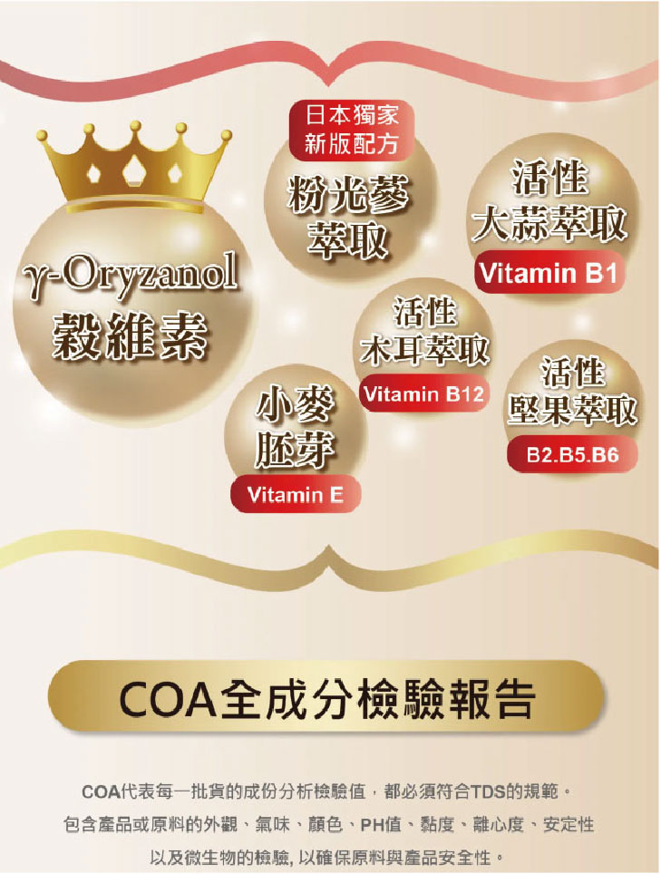 、活性維生素B1、本多酸鈣、r-穀維素、粉光蔘、維生