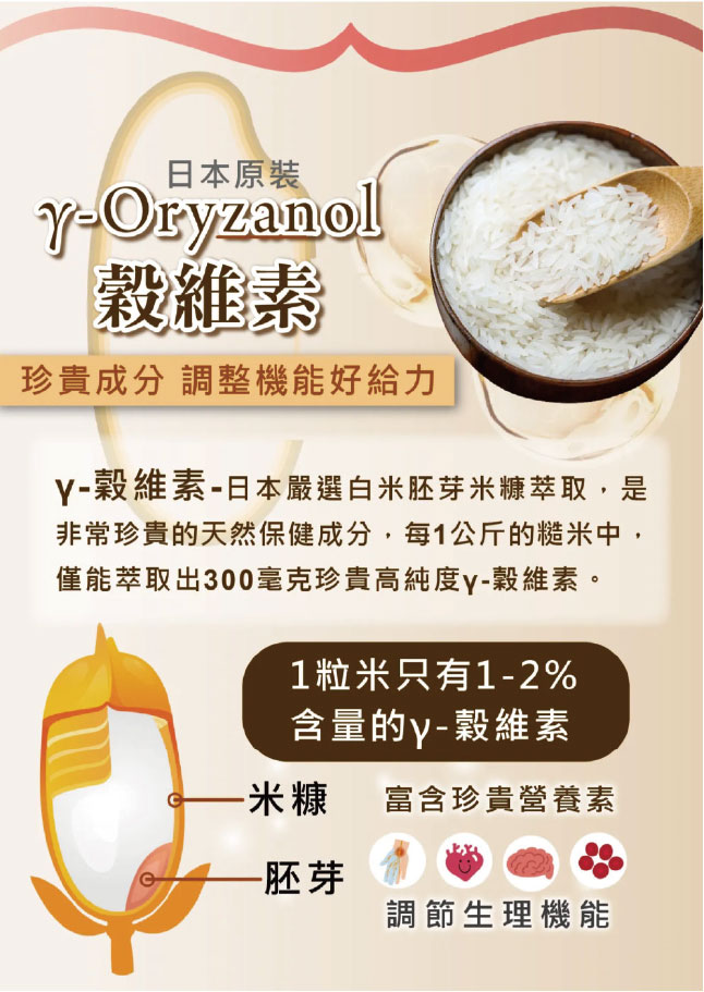 、活性維生素B1、本多酸鈣、r-穀維素、粉光蔘、維生