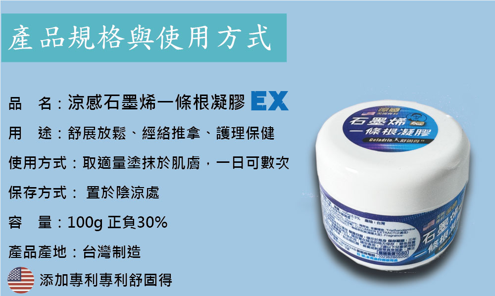 成份:Celadrin、薄荷油、老薑精油、冬綠油、蘆薈萃取液、洋甘菊、