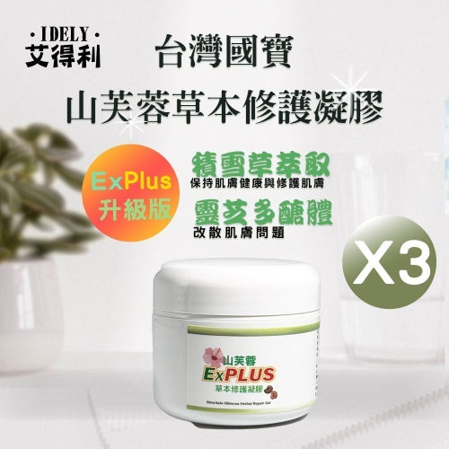 【艾得利IDELY】山芙蓉高純度天然草本修護凝膠Ex Plus 50ml x3罐(滋潤/柔嫩/舒緩/保護/防護)