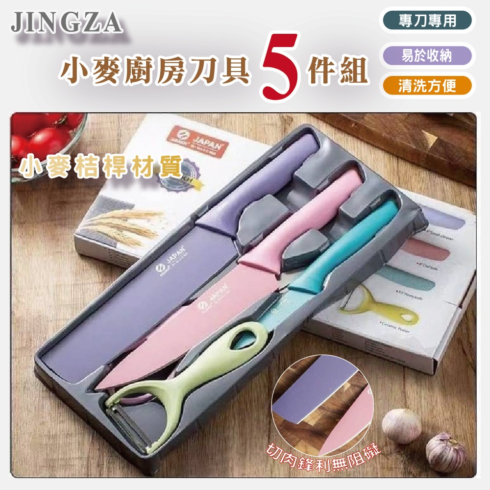 【JINGZA】 小麥廚房刀具5件組(不鏽鋼材質/切菜刀/切片刀/剪刀/刨刀/水果刀)
