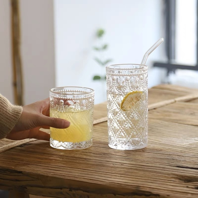 ✨復古浮雕菱形玻璃杯✨