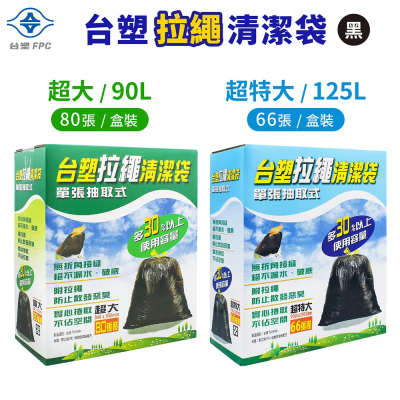 台塑 拉繩 清潔袋 垃圾袋 盒裝 彩盒 超特大 / 超大 黑色 125L / 90L 66張 / 80張