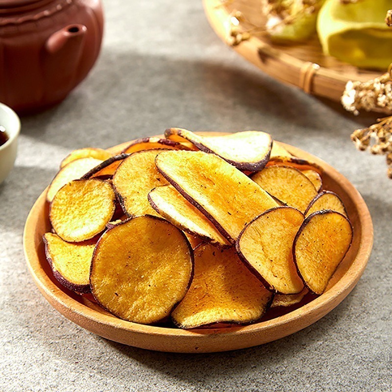 紅金地瓜片嚴選關東91號栗子地瓜帶皮厚切,烘焙出自然的香與甜。