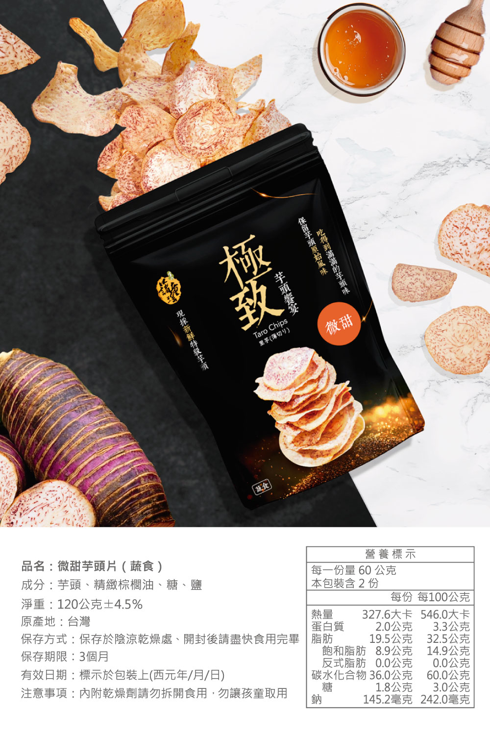 嚴選新鮮芋頭切片而成,純天然無人工添加,保留芋頭原始風味,讓您吃得到滿滿的芋頭味。
