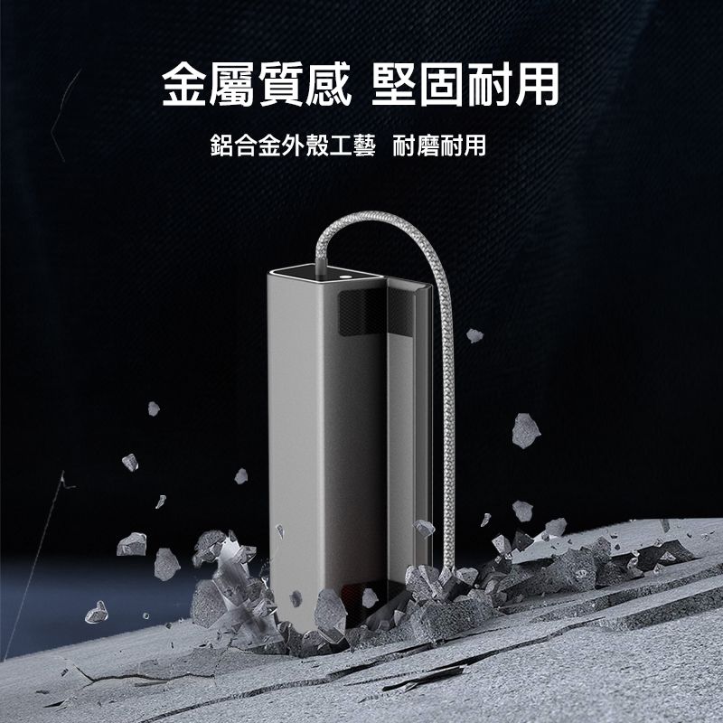 ◎ 特色功能 - 自帶編織充電線 - 防滑設計 - 金屬質感 - 支援45W快充 - 體積小散熱佳
