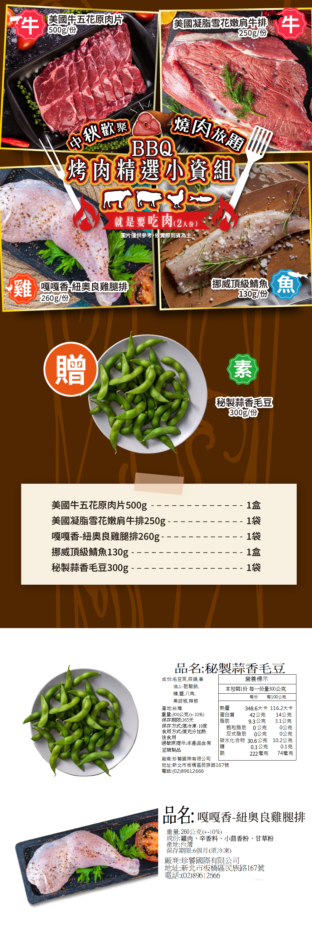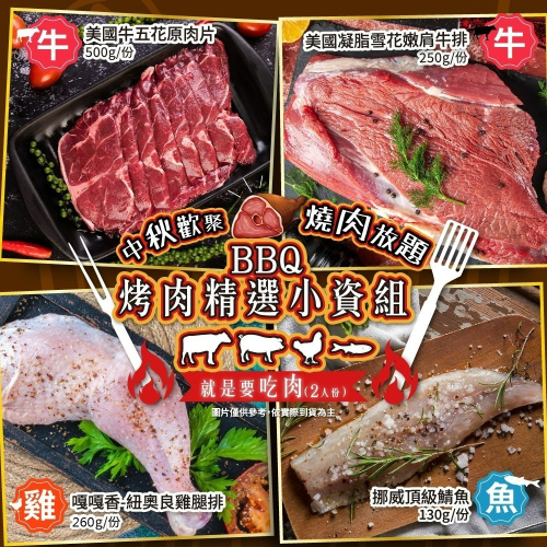 BBQ精選小資組,嚴選美國牛肉、挪威頂級鯖魚、紐奧良雞腿排