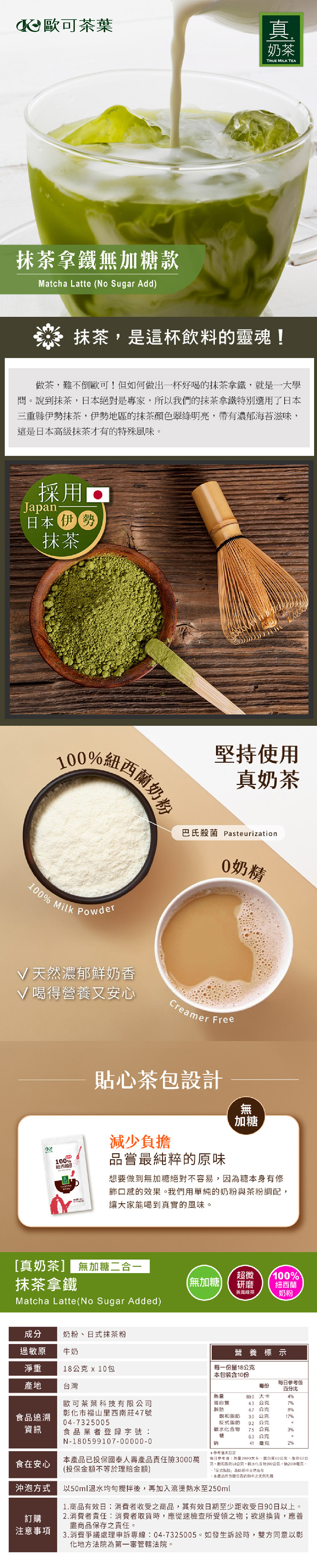 嚴選日本伊勢抹茶與100%紐西蘭奶粉