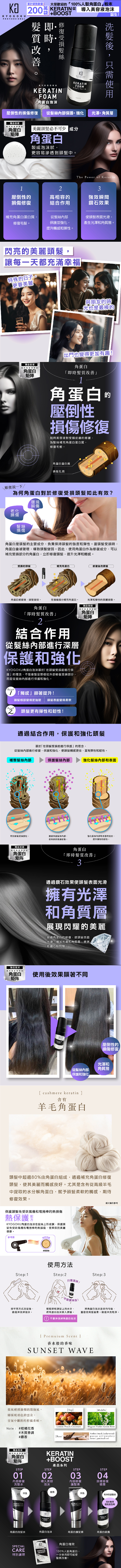成分:水解角蛋白、羊毛角蛋白、胺基酸複合物、植物萃取精華