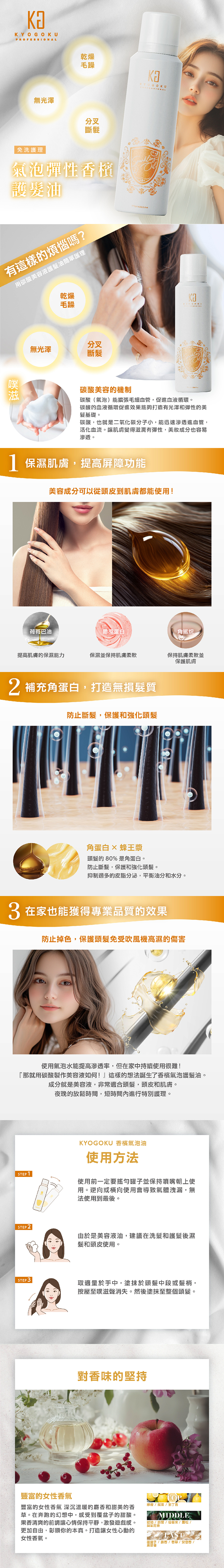 無論是日常保養、吹整前防護,或是快速修護乾燥髮絲,【KYOGOKU 氣泡彈性香檳護髮油】都能成為你秀髮的最佳守護!