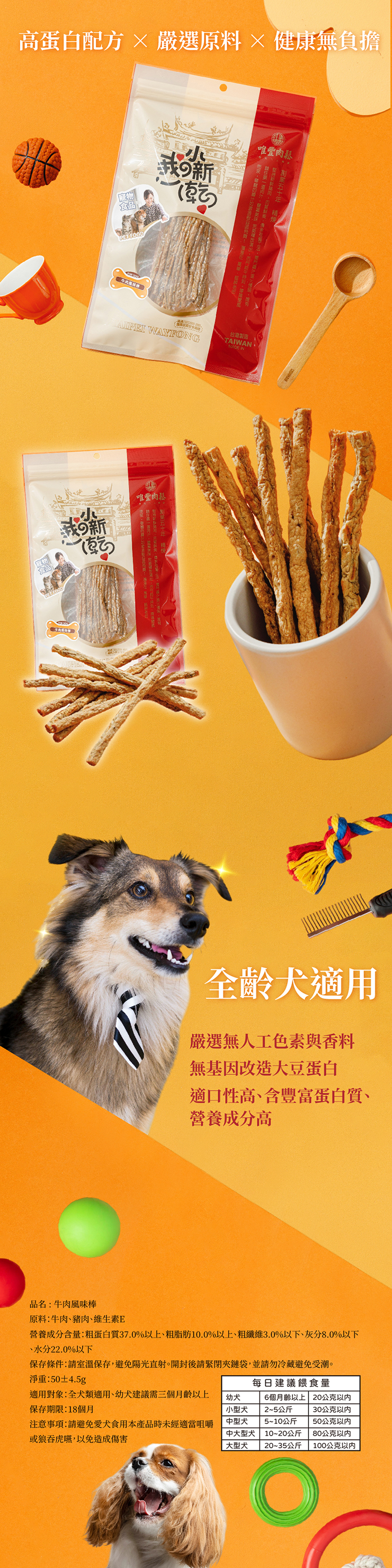 【唯豐】萌寵小新乾系列 牛肉風味棒 50g/包(5包組/10包組) 全齡犬適用 寵物零食