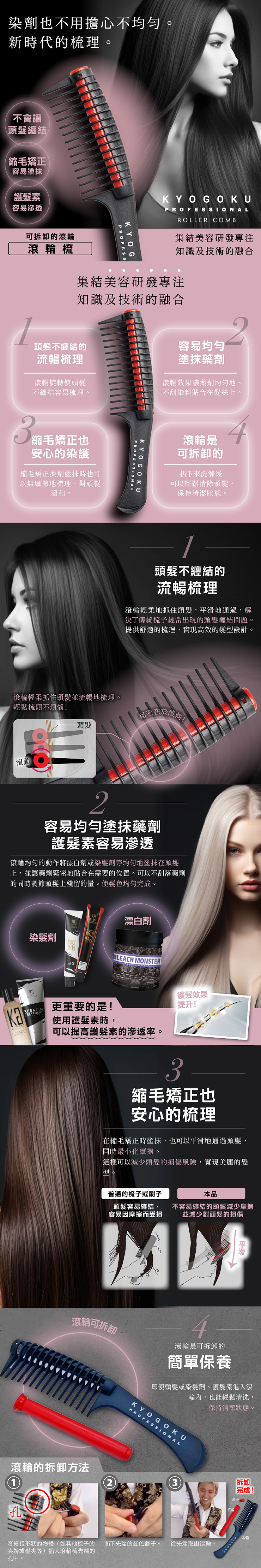 用途:染髮、護髮、縮毛矯正、日常梳理皆可用