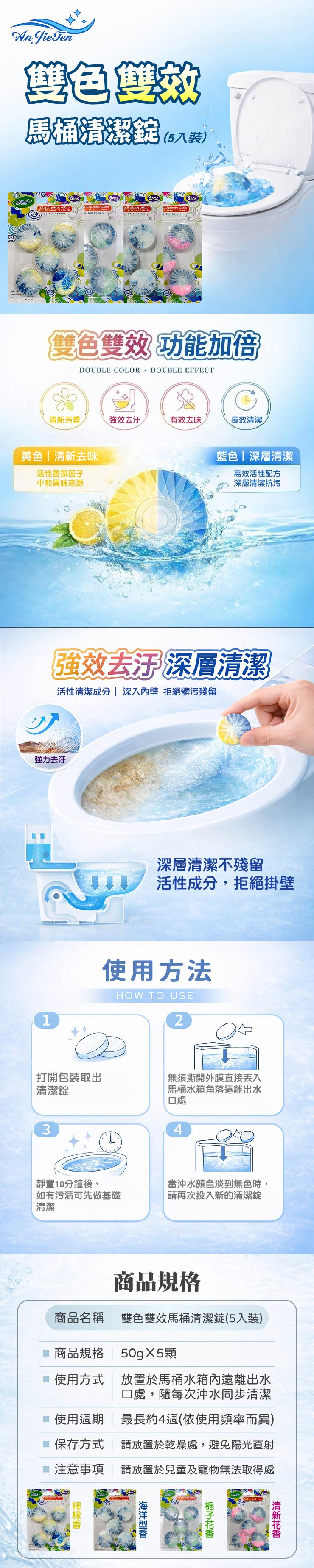 【家購網嚴選】Angiefen 雙色雙效清香藍泡泡 馬桶清潔錠 5入|沖水自動清潔|除臭芳香|款式隨機