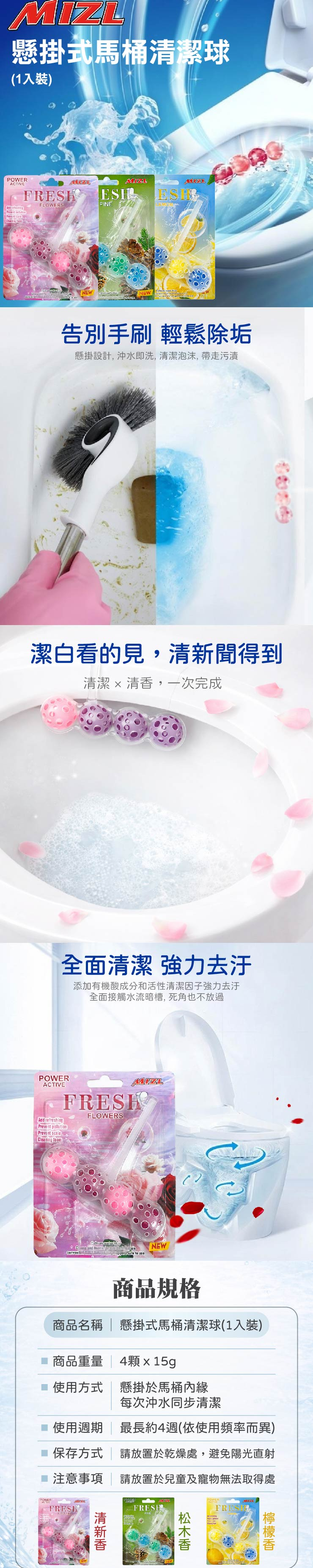 【家購網嚴選】MIZL 懸掛式馬桶清潔球 1入|沖水自動清潔|除臭芳香|款式隨機