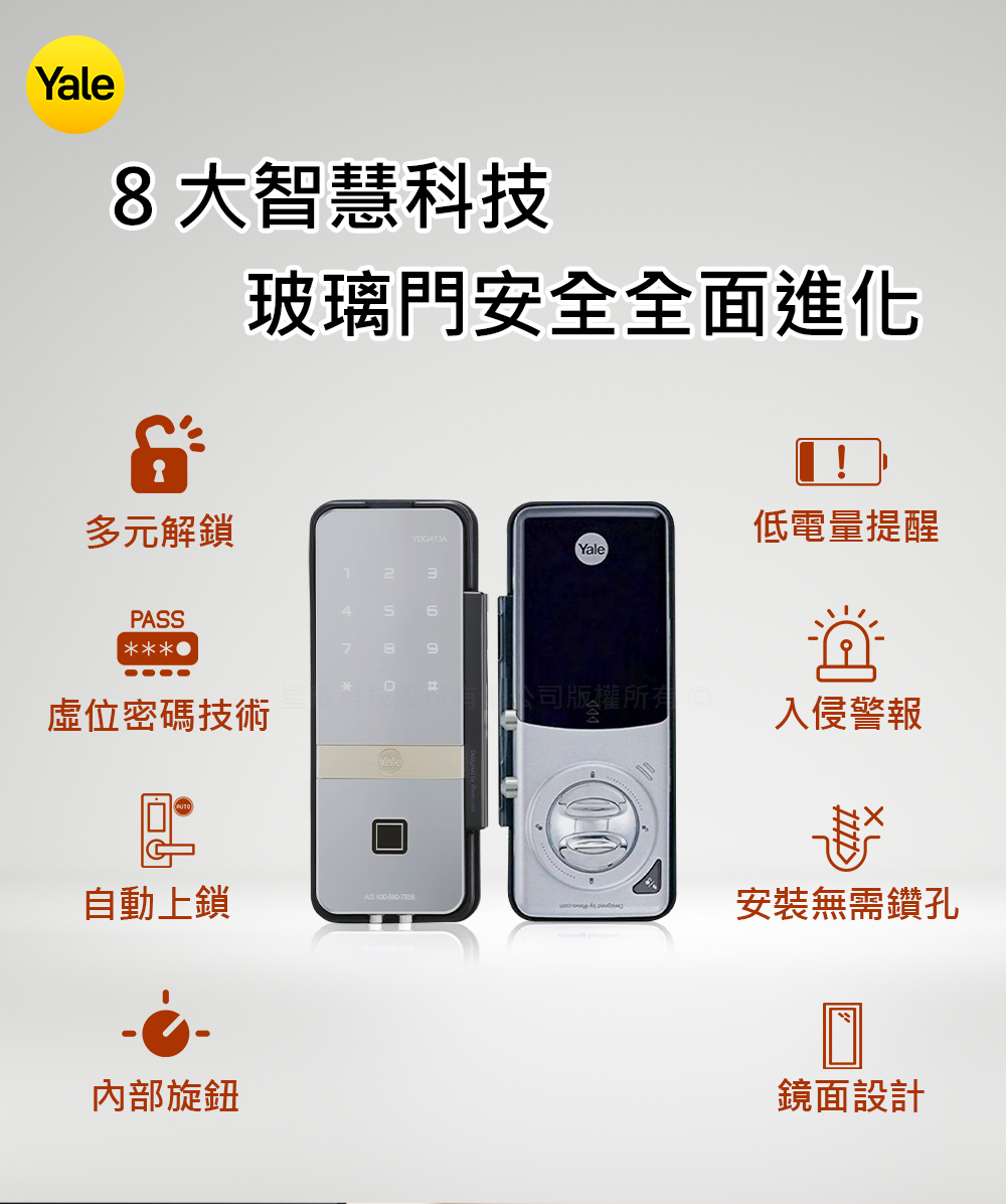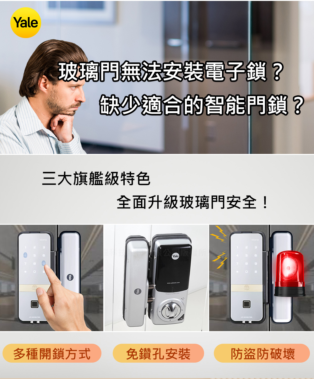 Yale 耶魯YDG-413A玻璃門專用輔助鎖附基本安裝