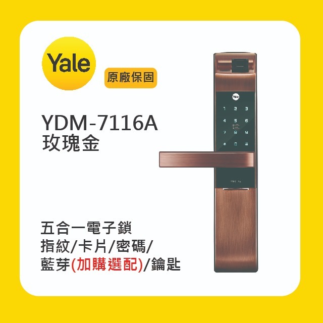 Yale 耶魯YDM-7116A 五合一電子鎖-玫瑰金附基本安裝