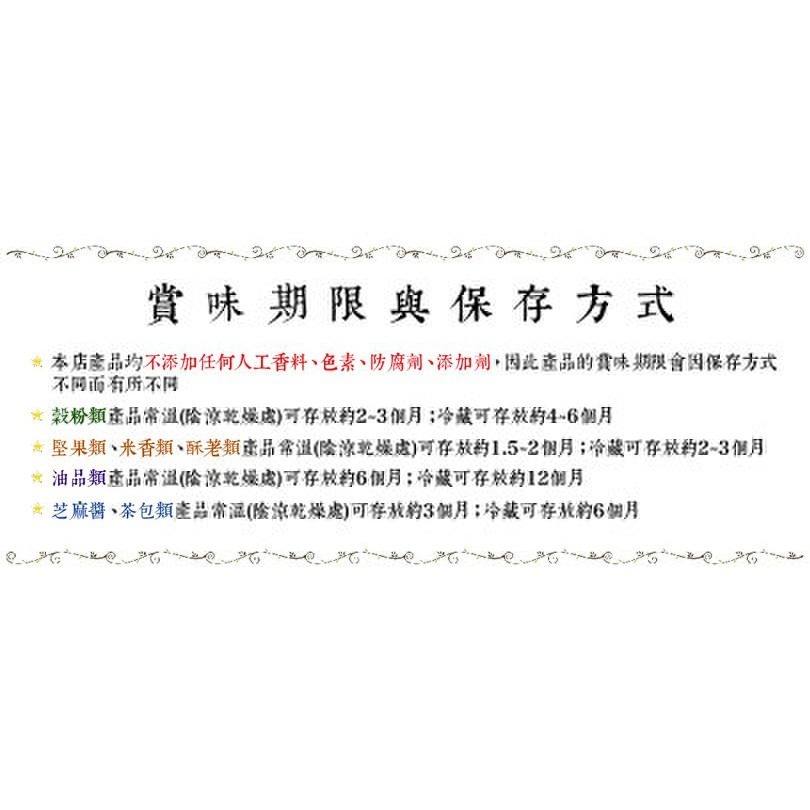 🛡️展榮商號產品皆有產品責任險:💰1000萬(南山產險:0960-2236005541-01) 🔖展榮商號產品皆有食品登錄業者字號:B-200161518-00002-4 🍀請消費者安心食用🍀 📌以下產品注意事項,選購前請詳讀: ⚠️ 包裝上所示為常溫(攝氏20~25度)賞味期,賞味期限非保存期限,選購後盡早食用完畢⚠️ 🌡️ 密封、低溫、冷藏、避免光照可延長賞味期;密封不實、悶熱、潮濕、光照等不當保存條件,會嚴重縮短賞味期;因此您選購商品後,保存環境是影響賞味期限長短的關鍵🌡️ 🌿 本行採用原料廠商皆附有農藥殘留檢驗合格證書,檢驗合格不代表零農藥殘留🌿 🌾 本行選用優質廠商供應精選當季原料;但農產品採自大自然中,還是有極低概率發生蟲蛀、雜粒...等狀況,若選購後三日內有此現象,敬請諒解,並請聯絡我們為您做後續處理🌾 🚚關於出貨: *🚛 宅配為被動出貨,物流來收才能寄出,無法趕單🚚* 📦 收到貨之後請先確認包裹完整,並開箱錄影,有任何缺件、破損..等問題,請於聊聊提出並提供開箱影片以利確保您的權益📹