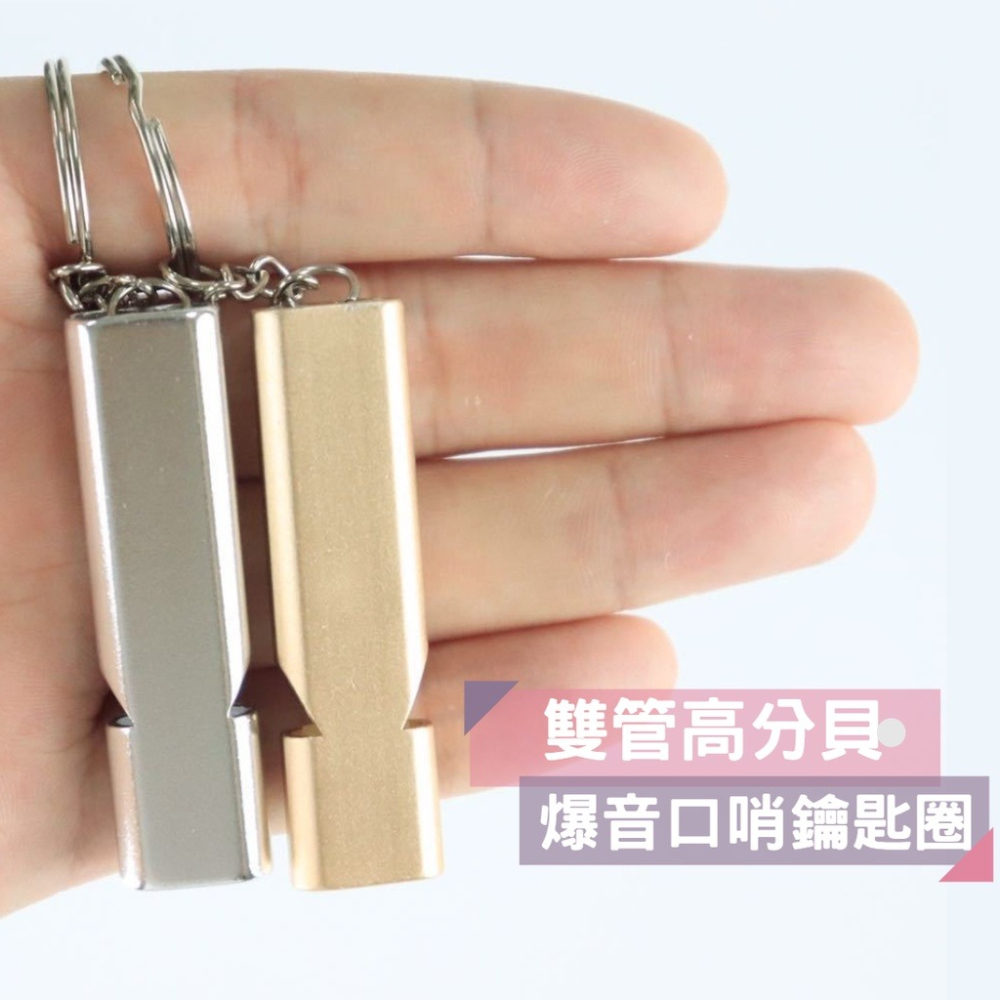 雙管高分貝爆音口哨鑰匙圈 高音哨 求生口哨 鋁合金雙頻高音求生哨 口哨 防狼野外防身哨子 超大聲哨子