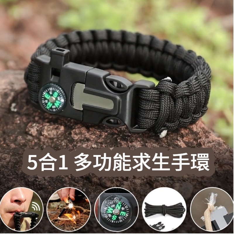 戰術野外求生手鍊 求生傘繩手環 傘繩編織款 野外登山戰術傘繩 打火棒 求生哨 指南針 打火刀 野外求生手鍊