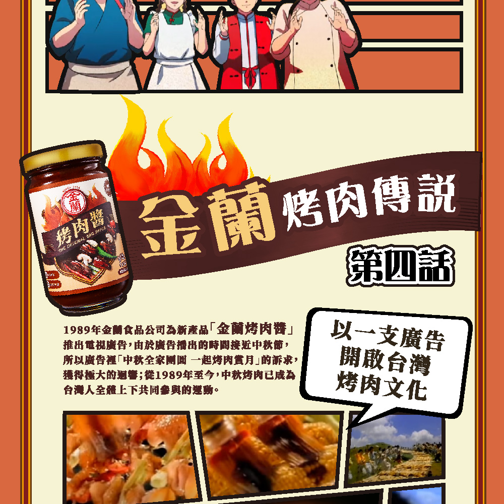 ◌台灣首支烤肉醬,1989年金蘭烤肉醬廣告開啟中秋節烤肉文化