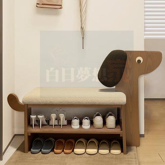 小狗動物造型換鞋凳 可愛動物鞋架 原木風換鞋凳 家用可坐穿鞋 兒童房幼兒園適用 玄關長凳 多功能鞋架 白日夢想家具店