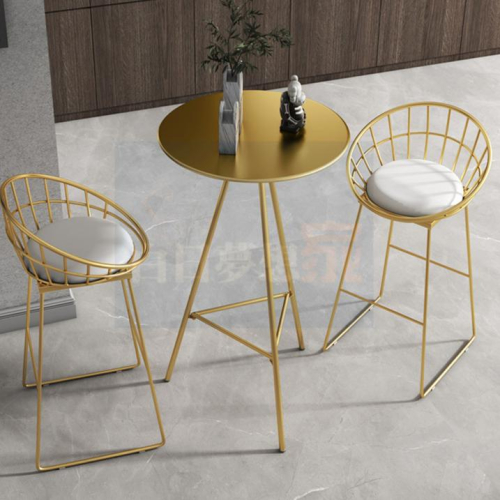 北歐金色酒吧台 鐵桌鐵椅小酒吧桌椅 高腳桌高腳椅 高腳圓形酒吧桌椅 北歐吧台桌椅 家用高腳酒吧桌 圓形