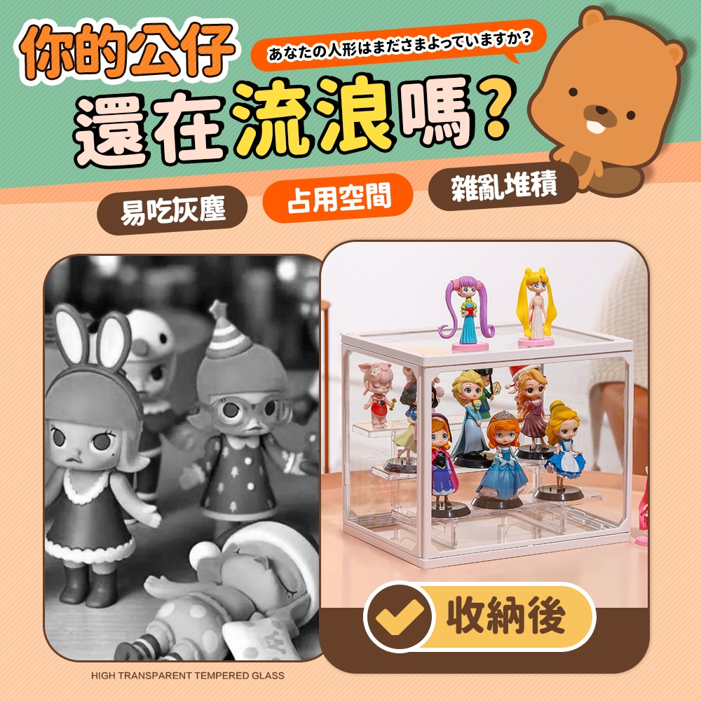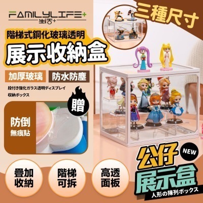 ●品名:階梯式鋼化玻璃透明展示收納盒