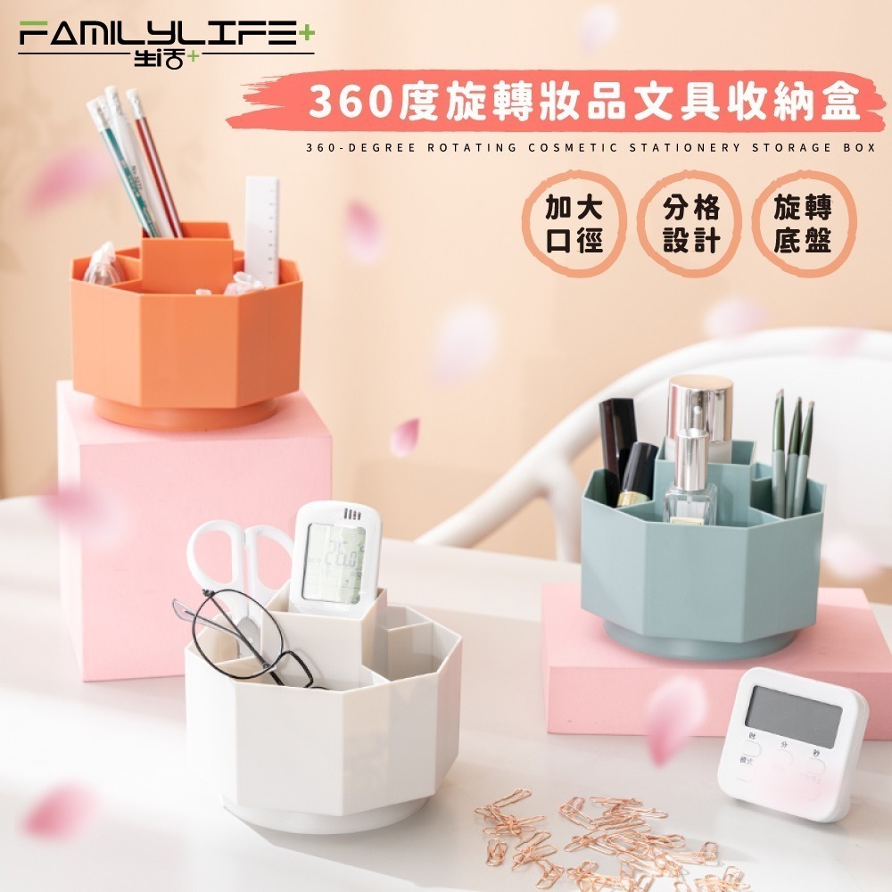 ●品名:360度旋轉妝品文具收納盒