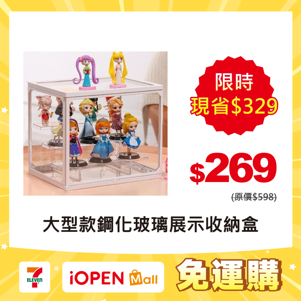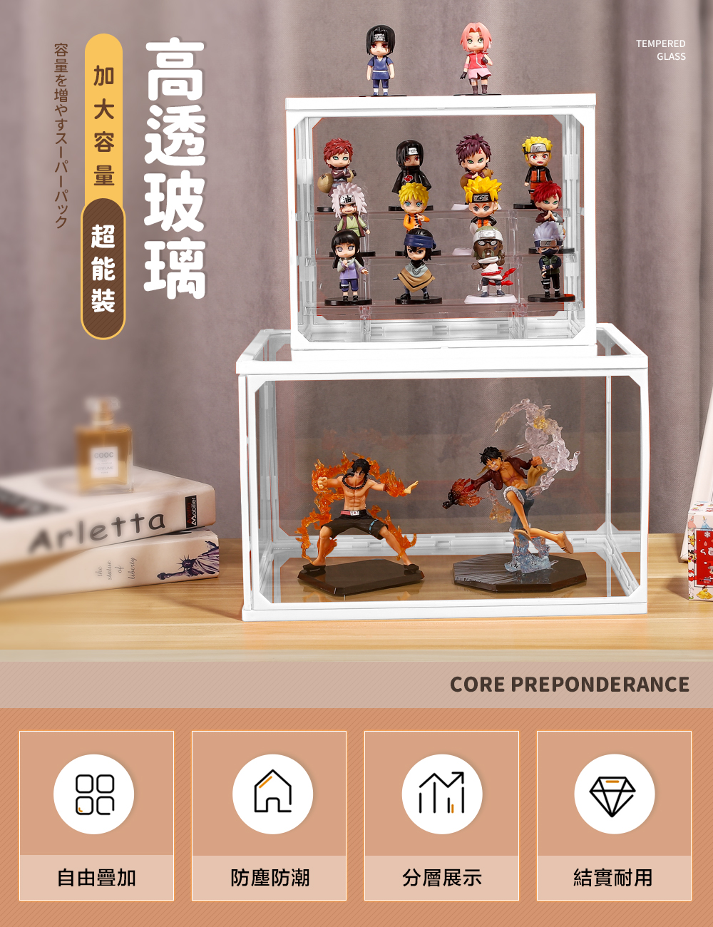 【7-ELEVEN 門市團購】大型款-階梯式鋼化玻璃透明展示收納盒(模型/公仔/展示盒/收藏盒/置物盒/A-097)