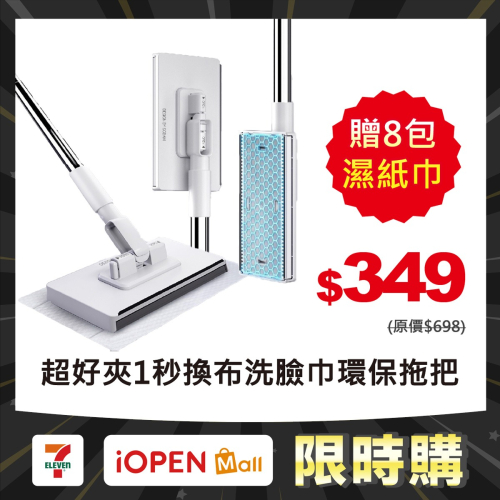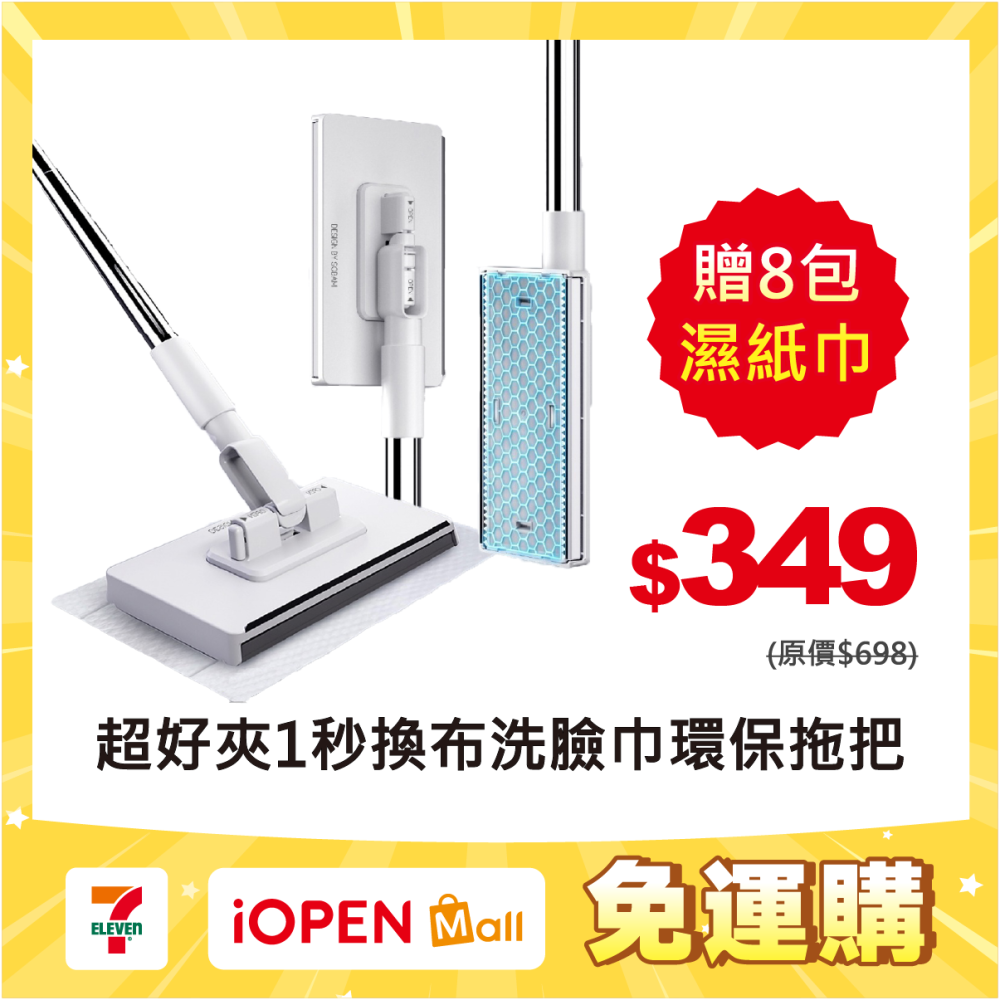 ●品名:超好夾1秒換布洗臉巾環保拖把-長桿款