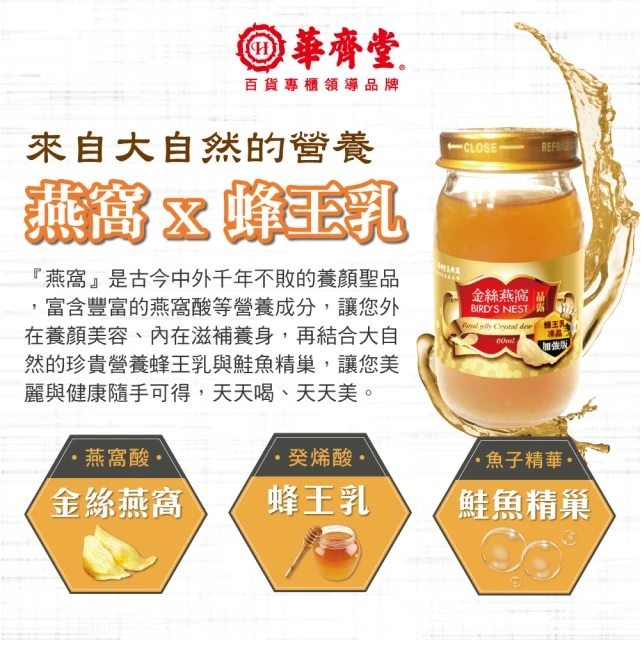 品名:華齊堂蜂王乳金絲燕窩晶露禮盒