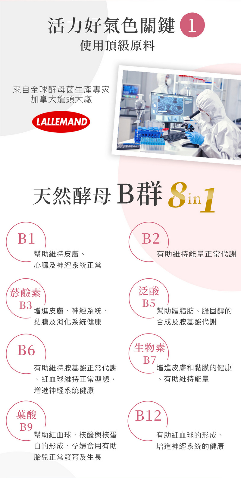 ✔8種B群頂級配方:B1.B2.B3.B5.B6.B7.B9.B12