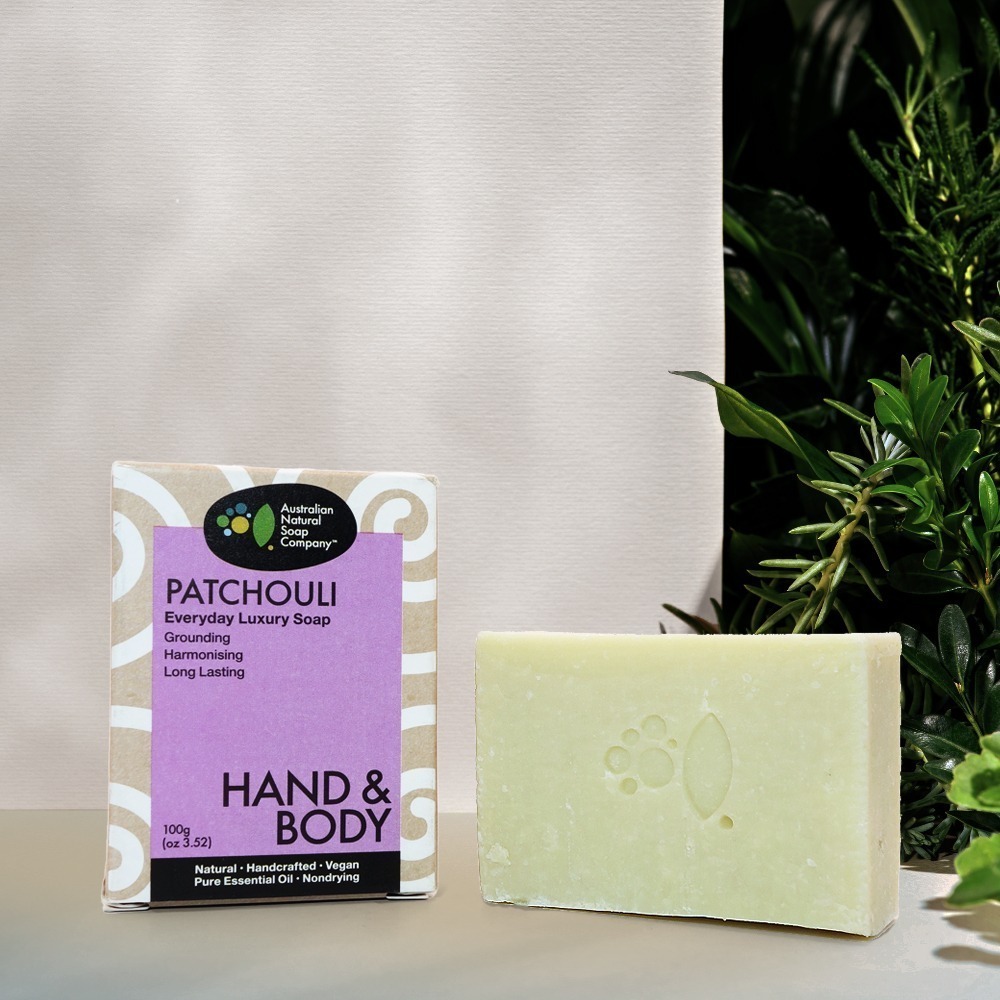 將廣藿香精油手工皂沾濕,搓揉起泡後,塗抹在皮膚上,輕輕按摩,再用清水沖洗乾淨。