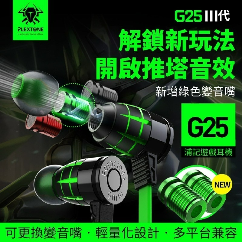 商品內容:浦記G25遊戲耳機*1、子彈型矽膠耳帽*4、3.5mm音頻延長線*1、電腦音頻轉接線*1、變音嘴*4、線夾*1、束線扣*1