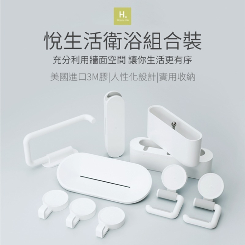 七件套組:肥皂盒1入、紙巾架1入、收納盒1入、牙刷架1入、拖把掛架2入、掛勾3入、手機夾1入