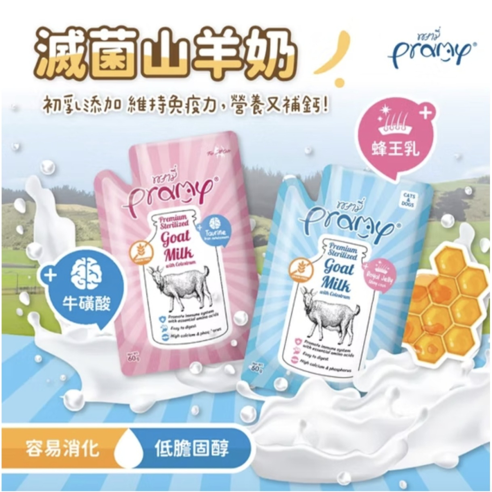 Pramy普拉山羊奶是一款專為犬貓與小動物設計的高品質營養品,搭配山羊初乳與蜂王乳,讓每一口都滿足健康所需,適合不同年齡層的寵物