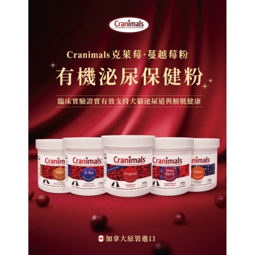 Cranimals Original 100% 蔓越莓泌尿道保健粉 專為成年犬貓設計,採用 100% 有機認證蔓越莓製成,純淨天然、品質卓越。