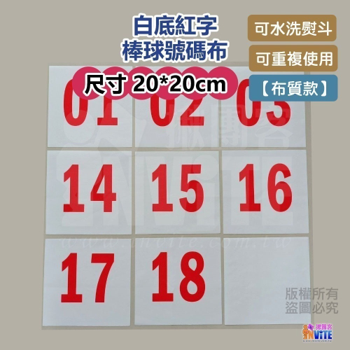 ♢揪團客♢ 【布】 棒球號碼布 20x20cm 白底紅字 白底黑字 01~18號+空白號碼布2張