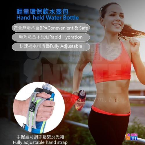 This handheld hydration pack keeps 500ml water bottle with an adjustable cinch strap and a curved bottle designed to fit your hand snugly.