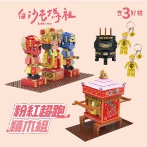 ★組合包含:白沙屯媽祖積木組1組+粉紅超跑積木組1組+香爐積木組1組+抬轎人鑰匙圈1組