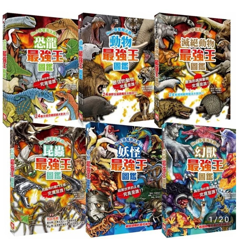 恐龍、動物、昆蟲、妖怪、幻獸、滅絕動物,不論是真實存在還是幻想中的角色,在這套書中都會接續登場,展開一對一的淘汰賽,並在每場戰鬥中使出渾身解數,極力求勝!擁有最強戰鬥力的霸主,究竟是誰?