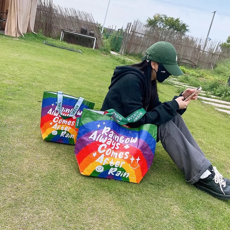 由於材質特性,編織袋在製造過程中可能會有塑膠味道。通常在幾天的通風後會自然散去。介意慎拍。